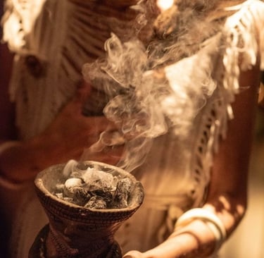 Um ritual individual criado exclusivamente para o seu momento, integrando medicinas da floresta (como rapé e cacau), cantos sagrados, instrumentos, símbolo, intenção e condução consciente.