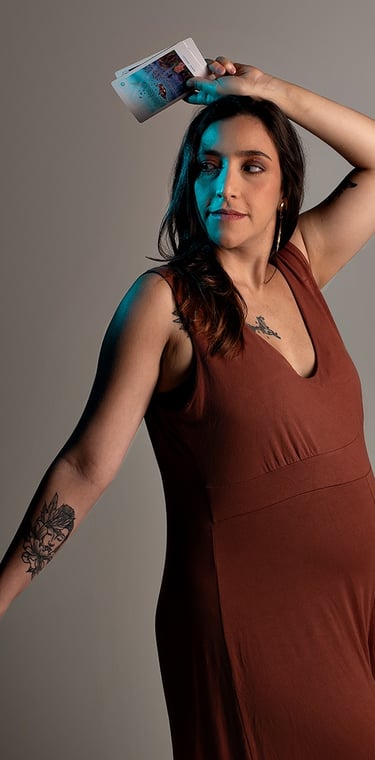Acompanho mulheres em processos de clareza simbólica, decisões conscientes e sustentação emocional, unindo oráculos, ritual e presença viva.